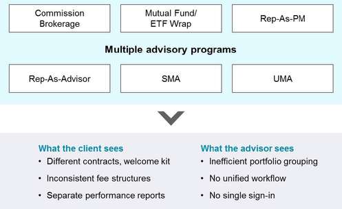 The need to cobble together information on an ad hoc basis can mean the advisor spends half the workday on administrative activities, with additional hours devoted to rebalancing or other low-value portfolio maintenance functions.