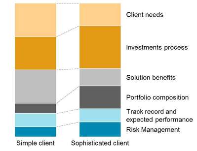 At all times, however, content must speak to the needs of the target. As per Figure 2, performance attribution and risk details will be more relevant to the sophisticated client than to the newbie investor, who will want to know features and benefits.