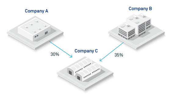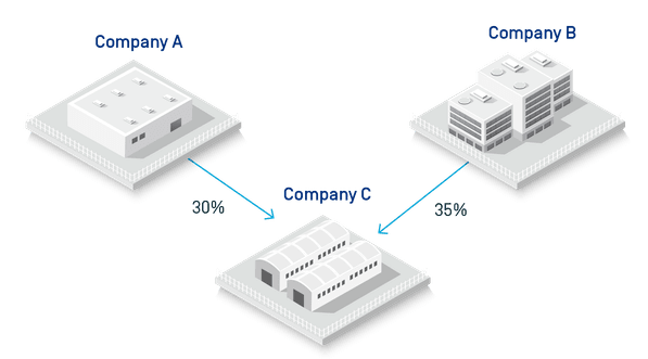 Companies A and B are Specially Designated Nationals (SDN) and both are also subject to Council Regulation (EU) No 269/2014 (“Regulation 269/2014”). Company C below can be considered an SDN and also subject to Regulation 269/2014 due to aggregation.